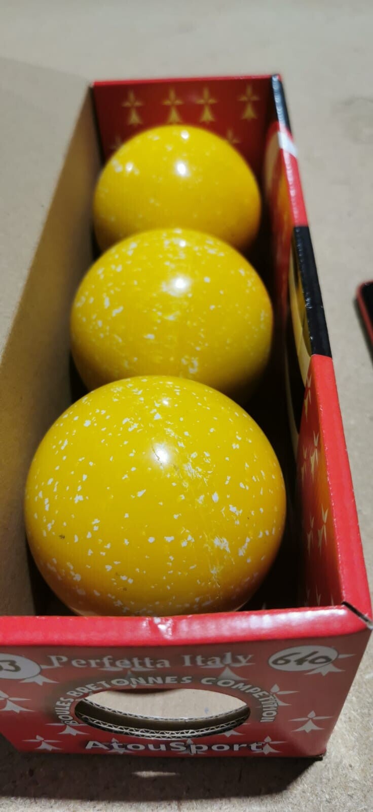 Une ou plusieurs boules présentent des imperfections esthétiques, rayures ou taches, mais rien qui n'altère la qualité de la boule.