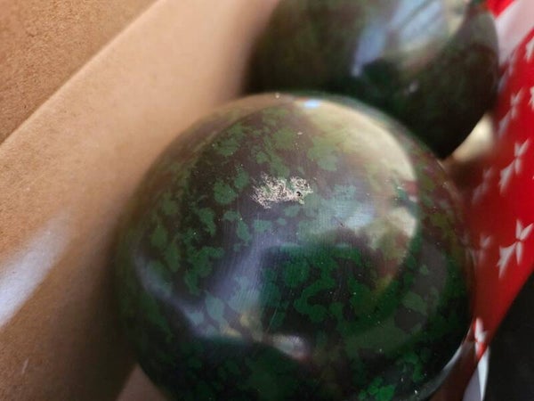 Une marque sur chaque boule. Problème de finition. N'altère en rien la qualité de la boule.