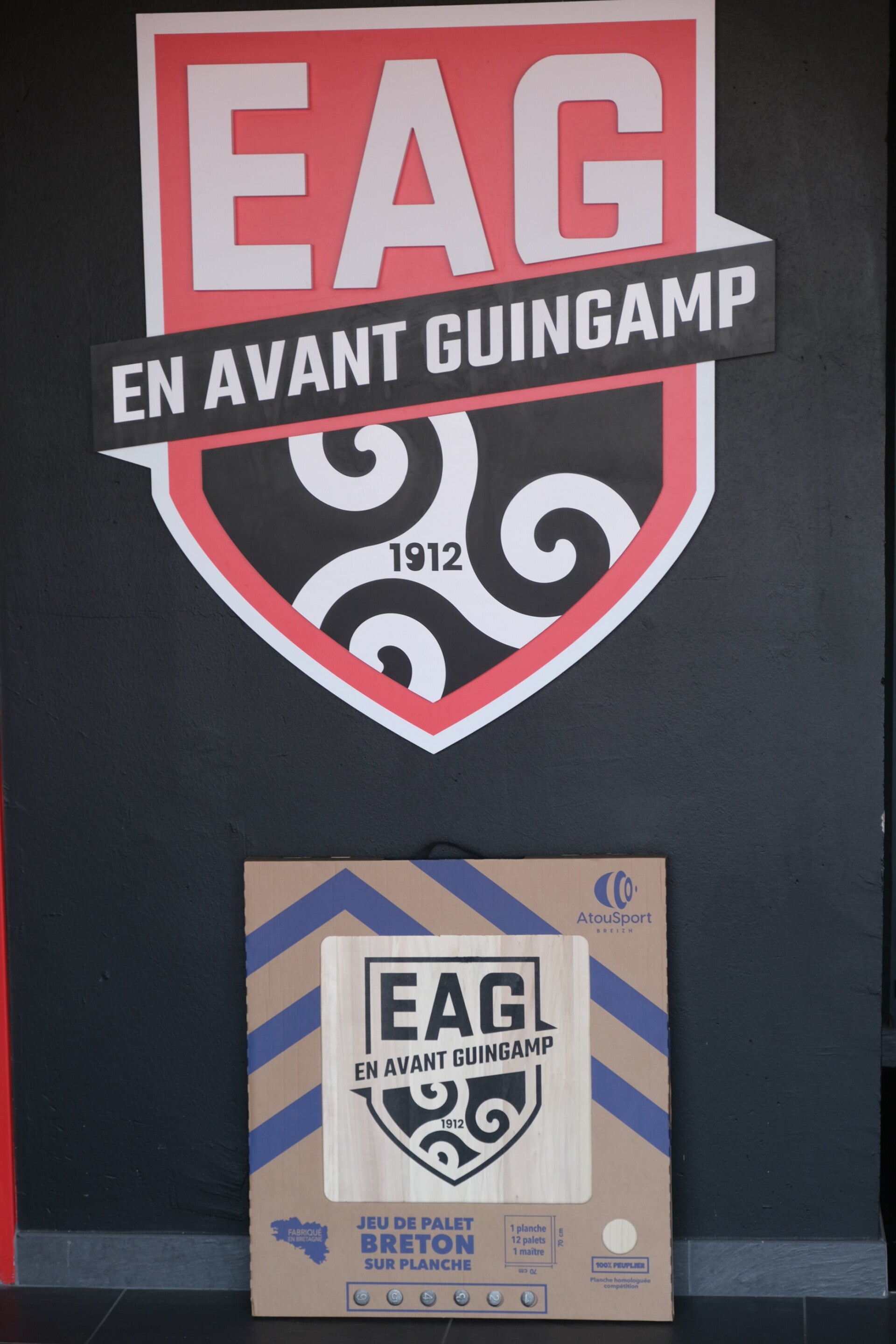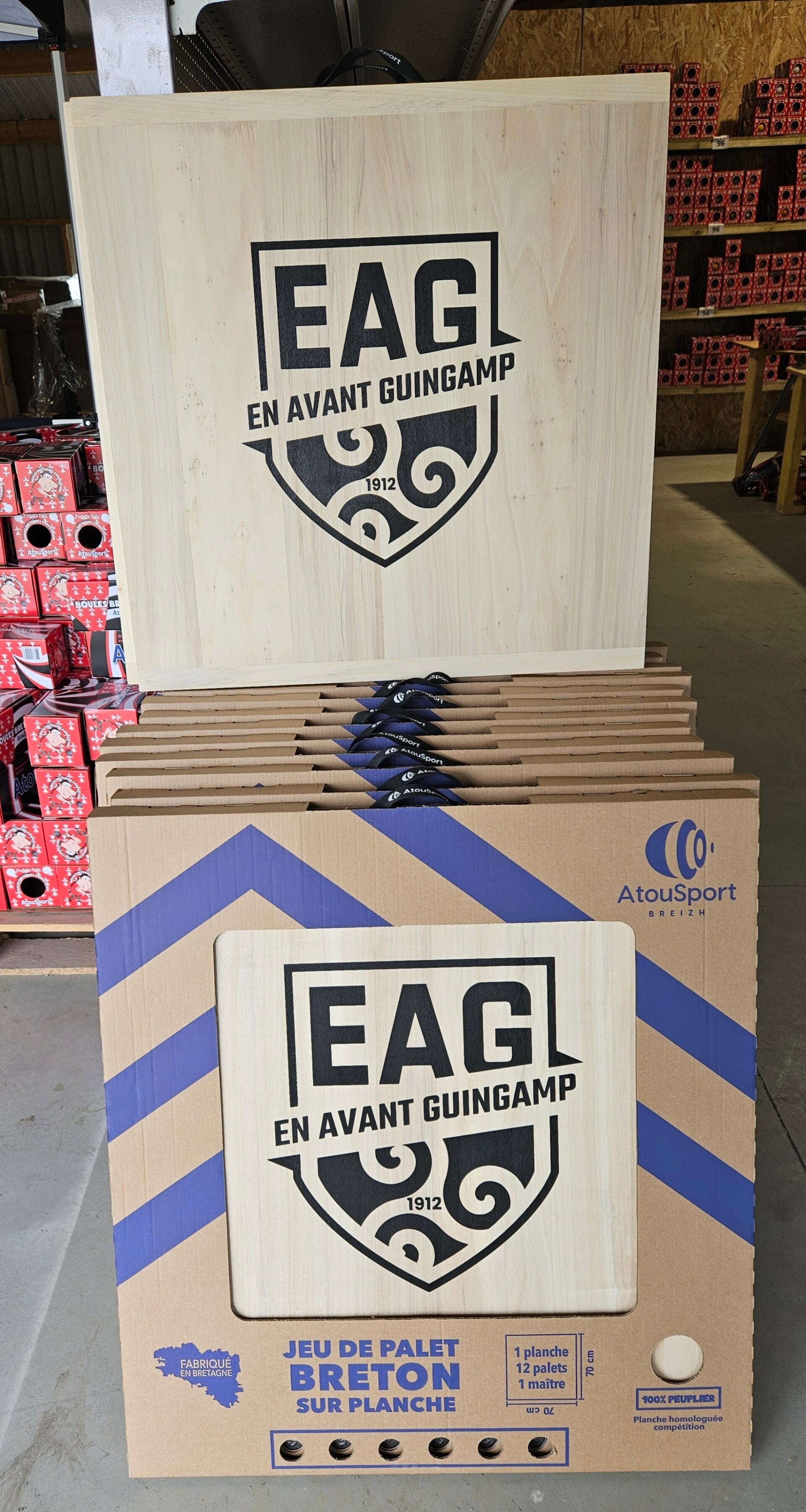 Jeu de palets Breton sur planche - Kit contenant 1 planche peuplier 70x70cm avec sérigraphie EAG + 13 palets loisirs pulvérisés (jeu de 12 + 1 maître)